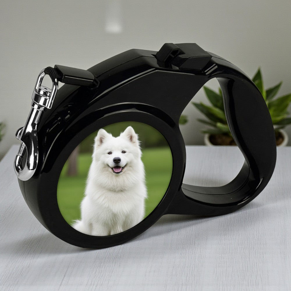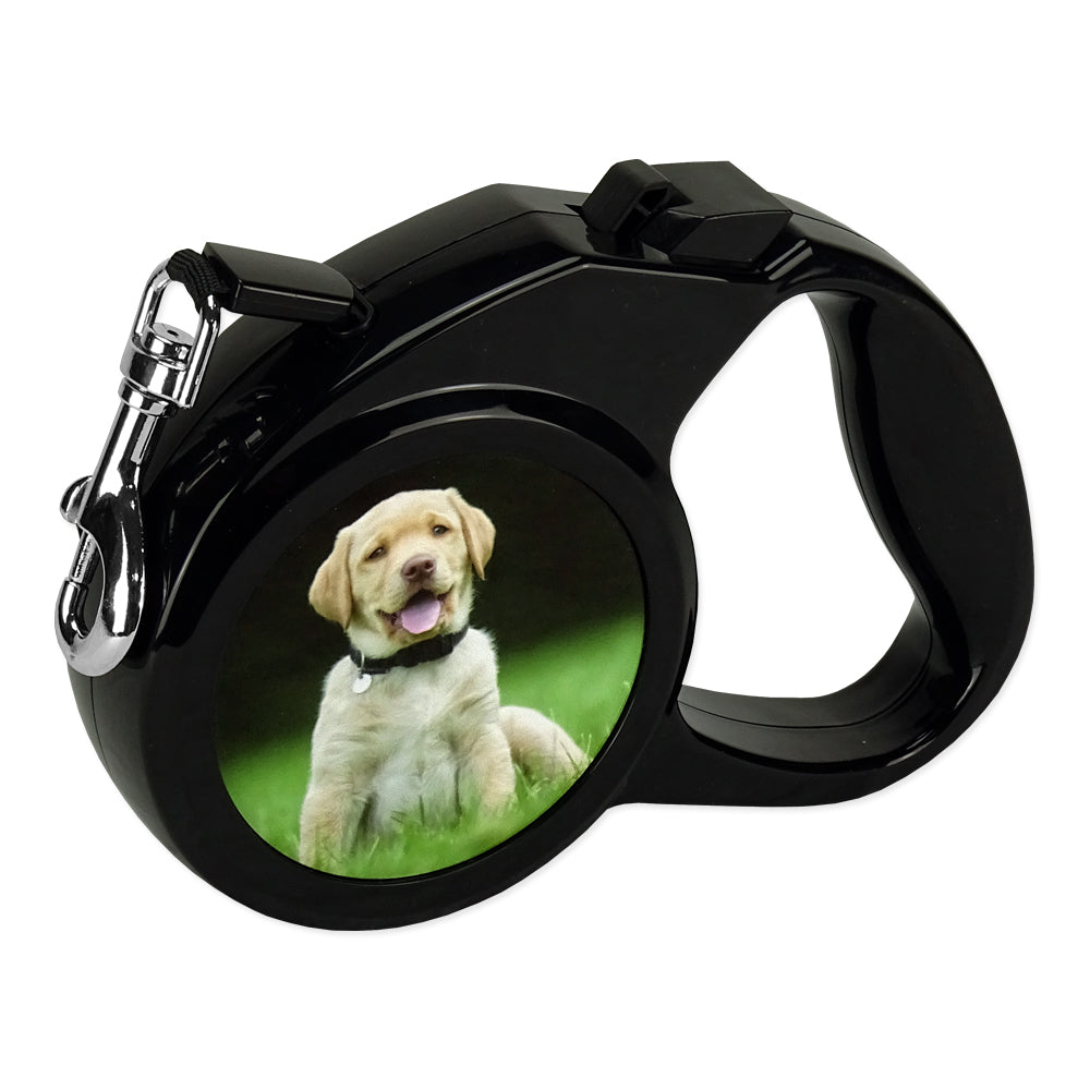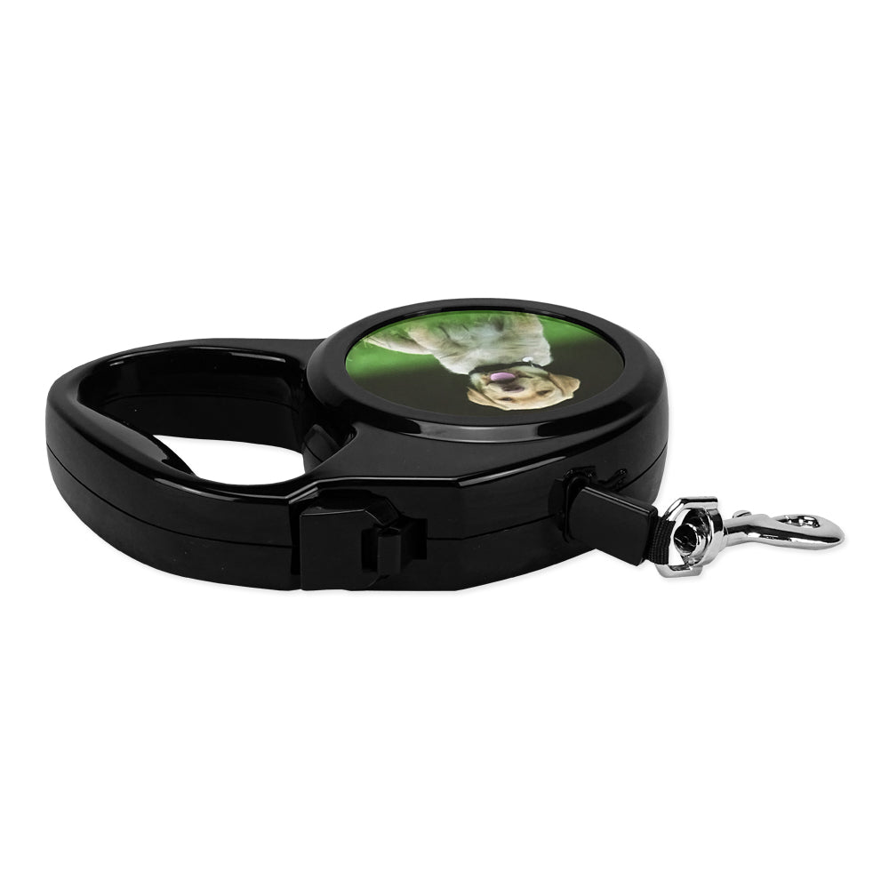 Diese Hundeleine ist bis zu 300 cm ausziehbar und hat an den Seiten zwei bedruckbare weiße Alueinsätze mit 68 mm Durchmesser. Die Flächen bieten Platz für dein Lieblingsfoto, für ein bestimmtes Logo, einem prägnanten Schriftzug oder einfallsreichem Text. Das stabile Gehäuse ist schwarz und trägt im Inneren einen hochwertigen Automatikaufzug, der die 10 mm breite Leine von selber wieder aufwickelt.